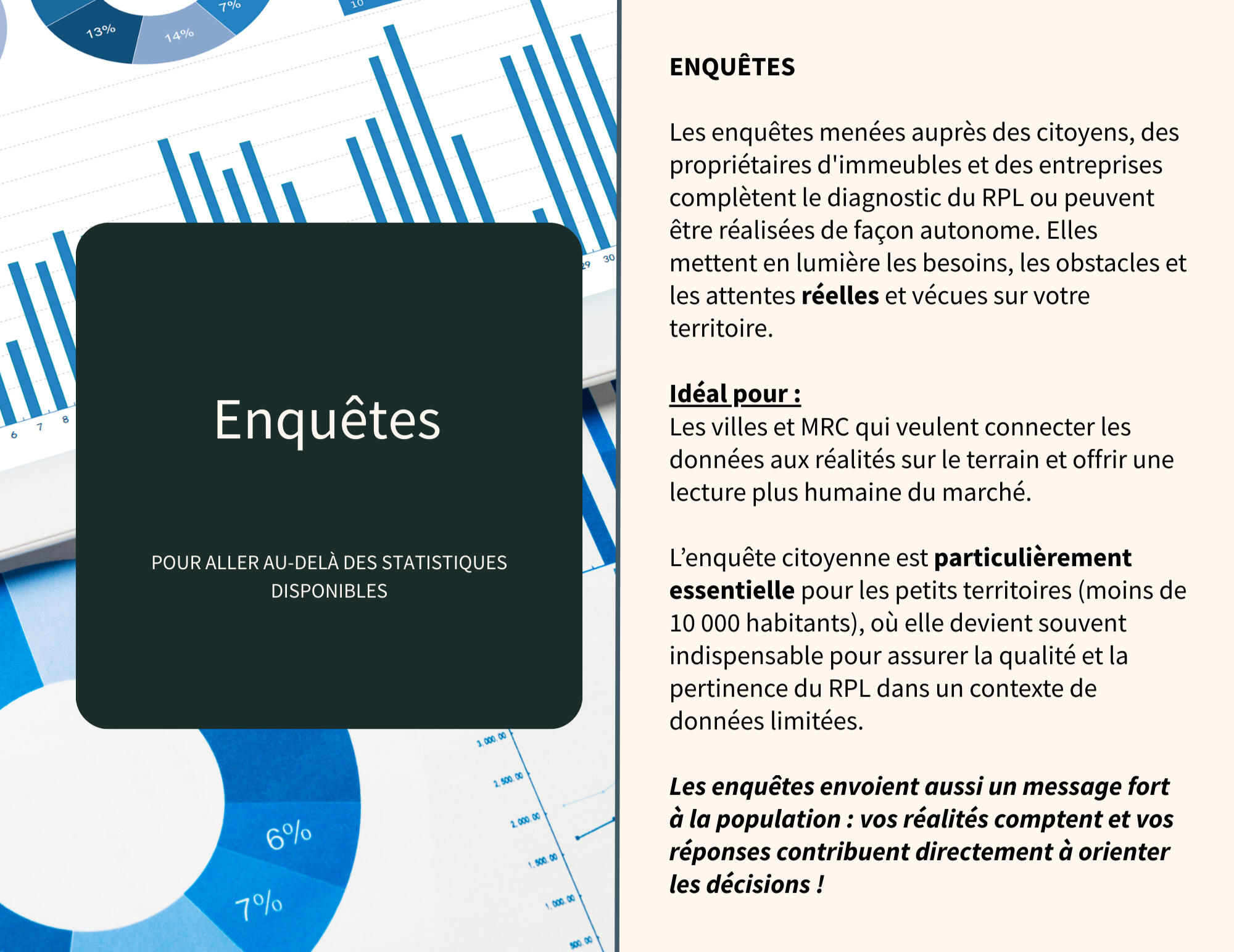 Alors que nous amorçons cette nouvelle année, nous demeurons plus que jamais résolus à innover, tout en consolidant notre expertise. Notre RPL, associé aux enquêtes citoyennes, continue d’évoluer pour soutenir encore mieux les villes dans leurs décisions stratégiques.