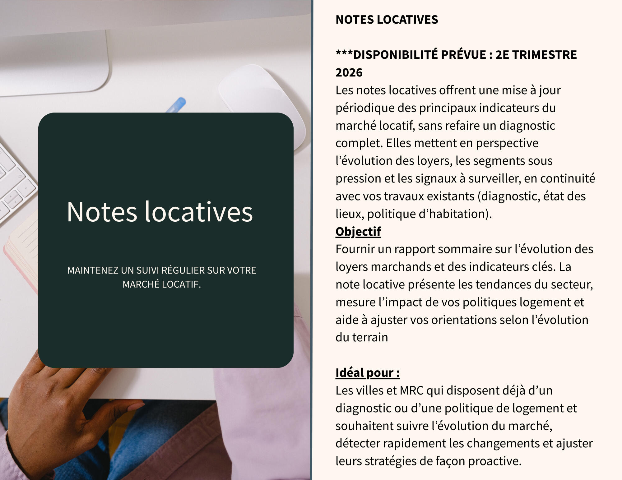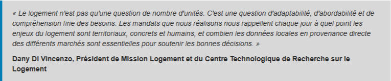''Vous n'êtes pas seul face à la crise du logement. Nous accompagnons déjà plusieurs décideurs, urbanistes et analystes de partout au Québec qui s'appuient sur nos données pour orienter l'offre et améliorer l'abordabilité sur leur territoire.''